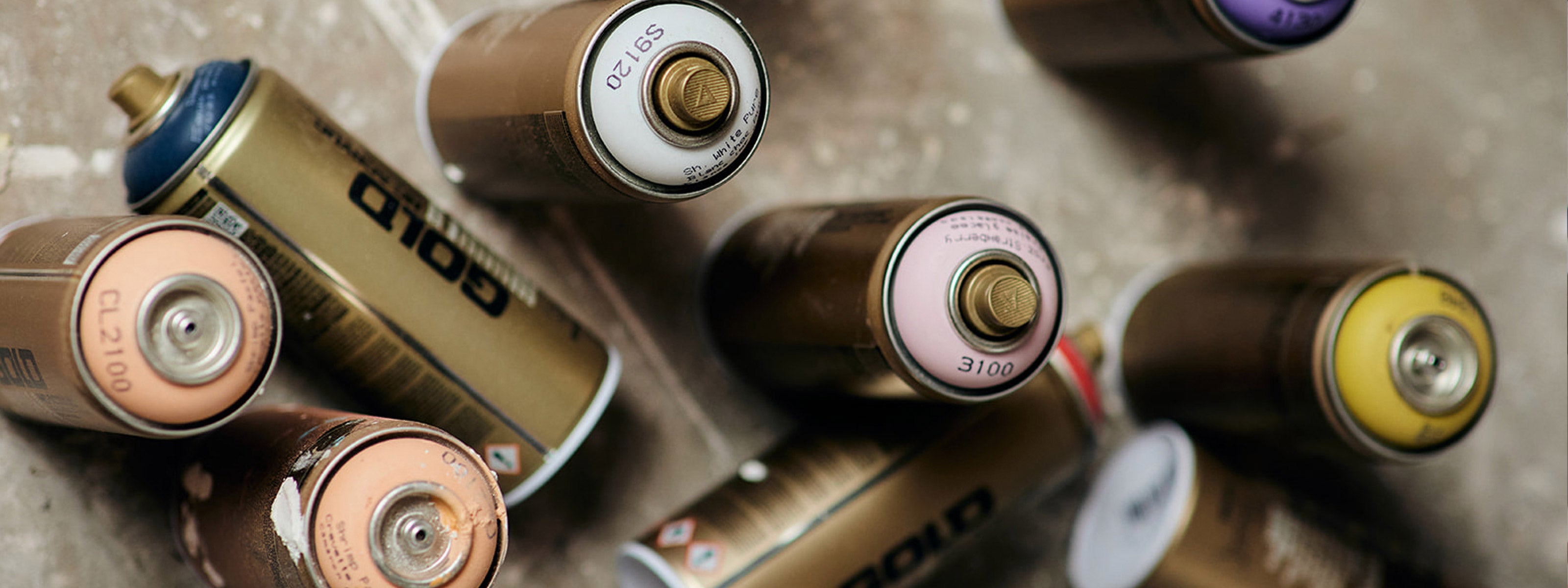 The walls layered with test swatches and spray paint, with canvases of all different sizes hung across the walls, each of them at a different stage of the process. Some are wet with the first layer of texture, some with spray paint and splashes of colour - a version of the piece that will soon only have remnants of its original form peering through meticulously added layers. There's a fine haze of saw dust on the floors from sanding back each layer to reveal the final piece.